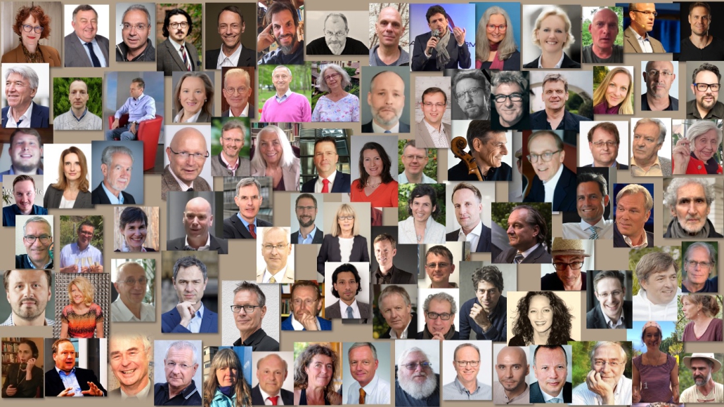 Alexander Flügel, Andreas Popp, Andreas Sönnichsen, Anke Uhlenwinkel, Barbara Graf, Beate Bahner, Bernhard Thalheim, Claudia von Werlhof, Claus Turtur, Clivia von Dewitz, Daniel Zicchino, Daniele Ganser, David Engels, Detlef Ahlborn, Elias Stangl Elisabeth Ruppert, Elke Haase-Hauptmann, Erich Graf, Felix Dirsch, Franz Ruppert, Georg Bruder, Gerald Hüther, Gerd Morgenthaler, Gerd Reuther, Günter Herold, Günter Roth, Hans-Joachim Heintze, Hans-Wolff Graf, Heike Egner, Heike Richter, Heiko Schöning, Imad Karim, Ingfried Hobert, Irmgard Deissenberger, Jan-Christian Lewitz, Jele Pilar Weiskopf, Jochen Kirchhof, Jörg Benedict, Jörg Spitz, Julian Pastor, Jürgen Fliege, Jürgen Foag, Jürgen Kremer, Katerina Stathi, Katharina Kowalski, Kathrin Gierhake, Katja Wörmer, Kay Klapproth, Kay Sterzik, Klaus Schlagmann, Lukas Kramer, Marcus Pretzell, Marcus Reid, Marcus Zeller, Markus Krall, Markus Wenzel, Markus Würmseher, Martin Schwab, Mathias Künlen, Max Otte, Maximilian Ruppert, Michael Esfeld, Michael Meyen, Michael Nerurkar, Michael Ballweg, Milosz Matuschek, Nicola Trautner, Patrik Baab, Paul Schlie, Rainer Klement, Rainer Rothfuß, Ralf Höcker, Ricardo Leppe, Réne Boyke, Sabine Lichtenfels, Steffen Pöhlmann, Tilmann Wick, Ulrike Guérot, Volker Metzger, Werner Kirstein, Wolfgang Lang, u.v.m..
